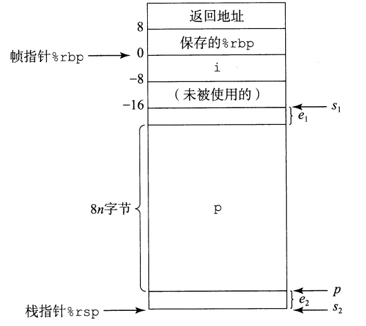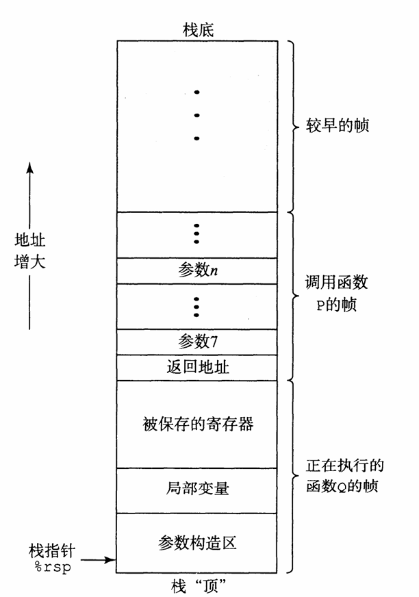 在较早版本的x86 代码中,每个函数调用都使用了帧指针。而现在,只在栈帧长可变的情况下才使用,就像函数 vframe 的情况一样。历史上,大多数编译器在生成IA32 代码时会使用帧指针。最近的GCC 版本放弃了这个惯例。可以看到把使用帧指针的代码和不使用帧指针的代码混在一起是可以的,只要所有的函数都把%rbp 当做被调用者保存寄存器来处理即可。