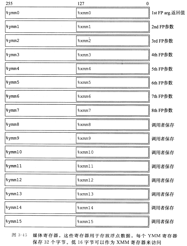 %xmm0来返回浮点值。 - 所有的XMM 寄存器都是调用者保存的。被调用者可以不用保存就覆盖这些寄存器