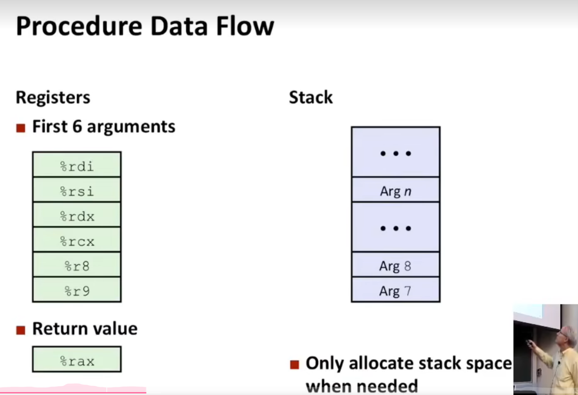 %xmm0~%xmm7最多可以传递8个浮点参数。按照参数列出的顺序使用这些寄存器。可以通过栈传递额外的浮点参数。 - 函数使用寄存器