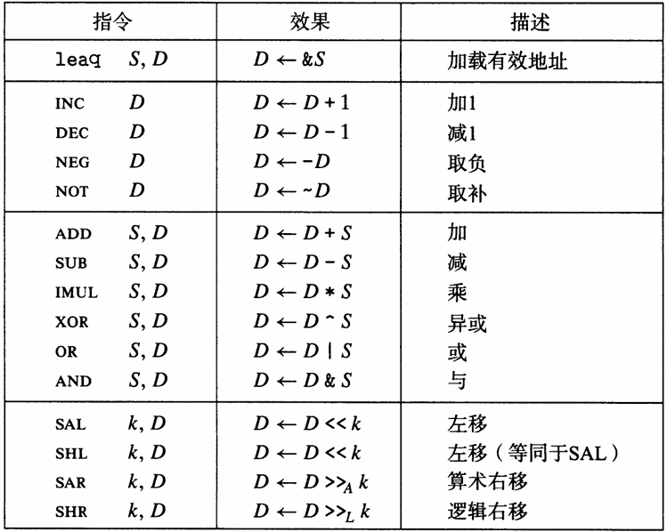- x86-64加了一条限制,传送指令的两个操作数不能都指向内存位置。将一个值从一个内存位置复制到另一个内存位置需要两条指令一第一条指令将源值加载到寄存器中,第二条将该寄存器值写人目的位置。
