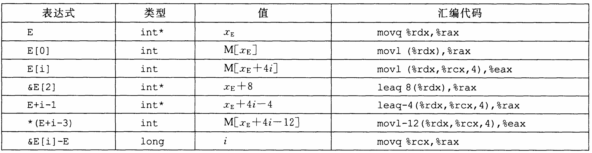 当过程开始执行时,过程参数xp和y分别存储在寄存器%rdi和%rsi中。然后,指令2从内存中读出x,把它存放到寄存器%rax中,直接实现了C程序中的操作x=*xp。稍后,用寄存器%rax从这个函数返回一个值,因而返回值就是x。指令3将y写入到寄存器%rdi中的xp指向的内存位置,直接实现了操作*xp=y。
