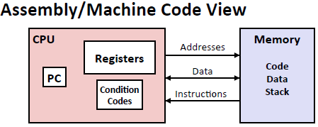 程序员的角度 vs 微体系结构 (程序员可见 vs 程序员不可见),在CPU方面,开放给程序员的编程接口只是PC,寄存器,条件码,其他的内部信息比如CPU内部的Cache对程序员来说都是不可见的,内存角度来讲,大部分的ISA支持字节寻址方式 (即Byte寻址,实际上还有Bit寻址,32-bit寻址,64-bit寻址等,只是比较少见而已),绝大多数的ISA具有确定的大小端模式 (有些ISA可变)。